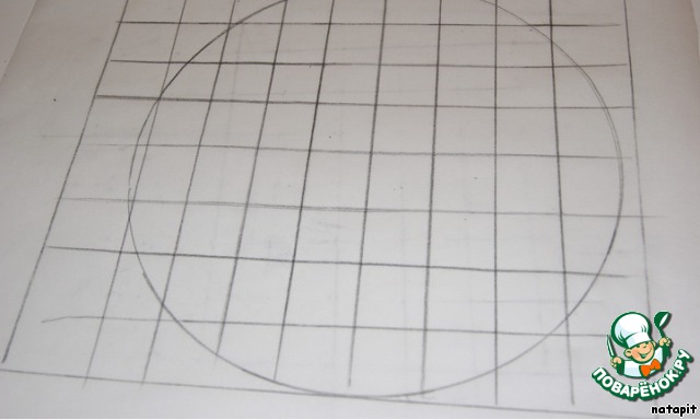 Нарисовать круг диаметром 24 см. и разбить его на квадраты 3х3 см. Это будет наш "планшет".