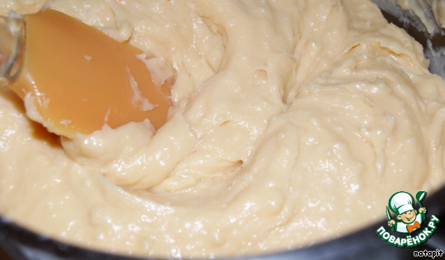 Слегка остудив тесто ввести в него по одному яйца, каждый раз тщательно перемешивая тесто до однородности.