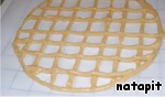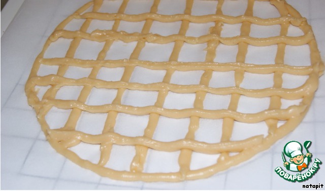 Поместить тесто в шприц (кулинарный мешок,с тонкой насадкой) и нанести на него тесто строго по рисунку.